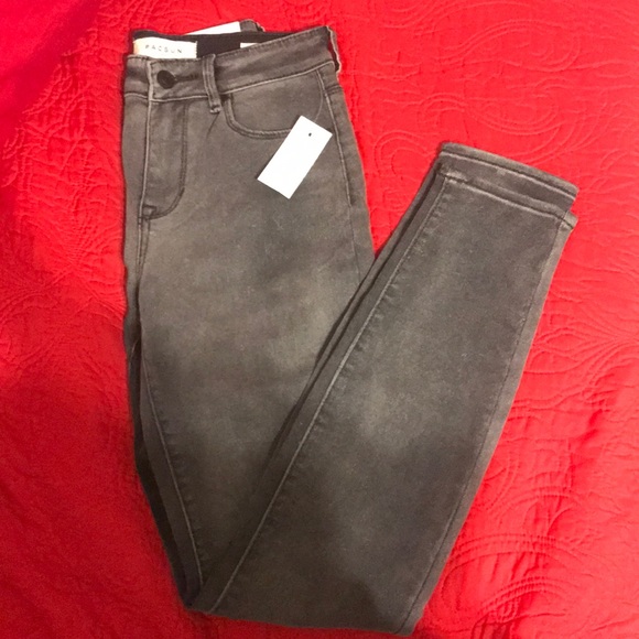 high rise gray jeans. Never worn, still has its tags! Super cute and great quality. Perfect for fall! would look cute with the bottoms rolled up or as is! Let me know if you have any questions :)