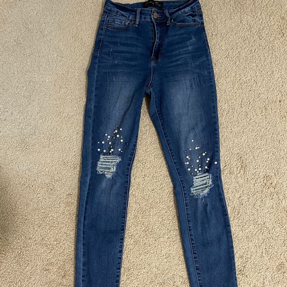 High Rise, Stretch Beautiful stone details on the knees Size 7 Runs small