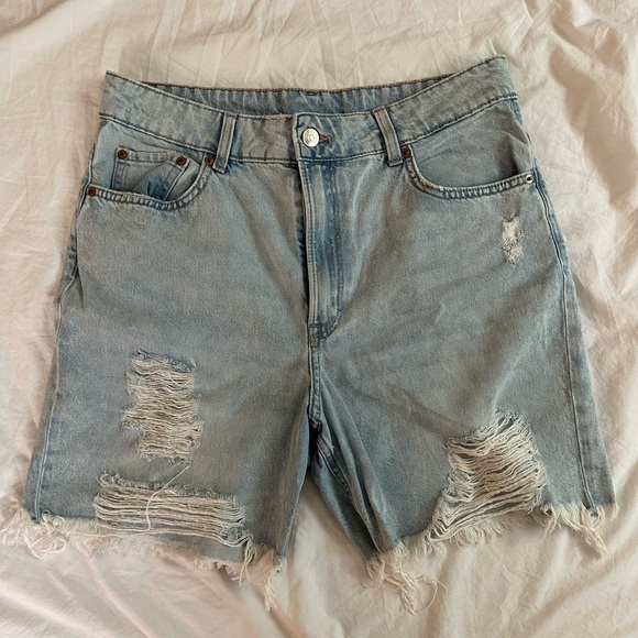 Jean shorts! High rise and Goes to mid thigh, perfect fit with comfortable denim. Not to thick and has room for movement! Size 10.