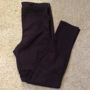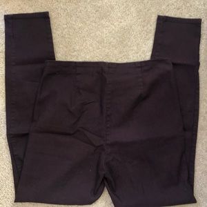 High waist. Zip fly on the side of the pants. Super skinny legs. Item shown is a size 12