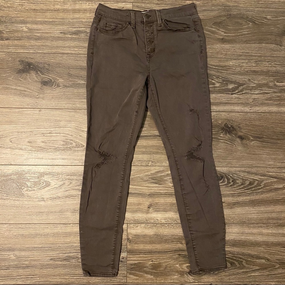 High waisted jeans. Olive green color. Skinny. Distressed. Never worn. Send me offers!