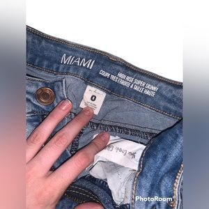 • size 0 • good stretch • not sure what brand, AE for exposure • intentional holes from when it was bought • real pockets •