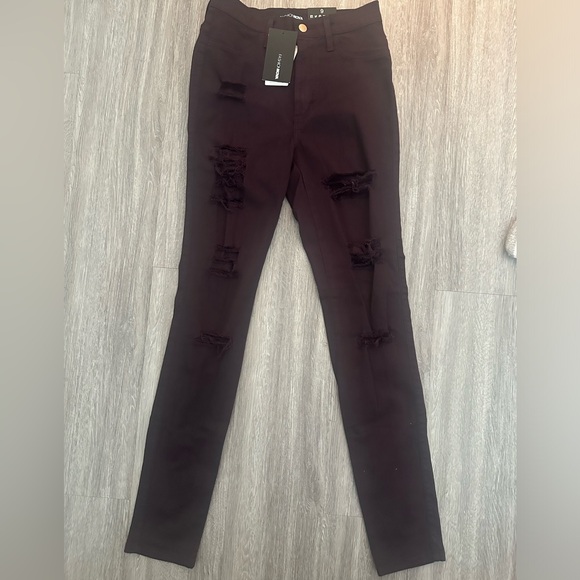 Plum color high rise super stretch distressed jeans! Size 9