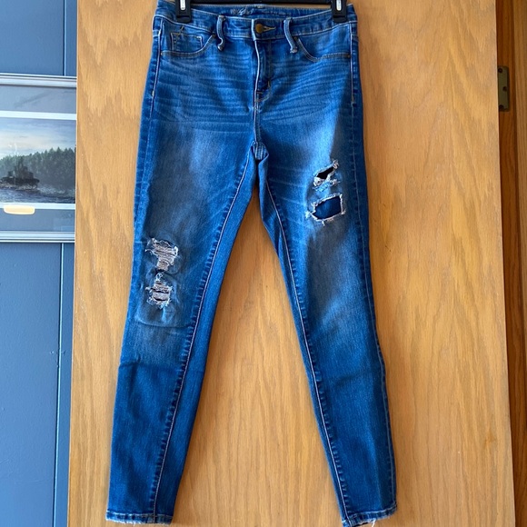 Mossimo Denim Distressed High Rise Jeggings. In great condition! Very comfortable, power stretch material. Has 2 back pockets.