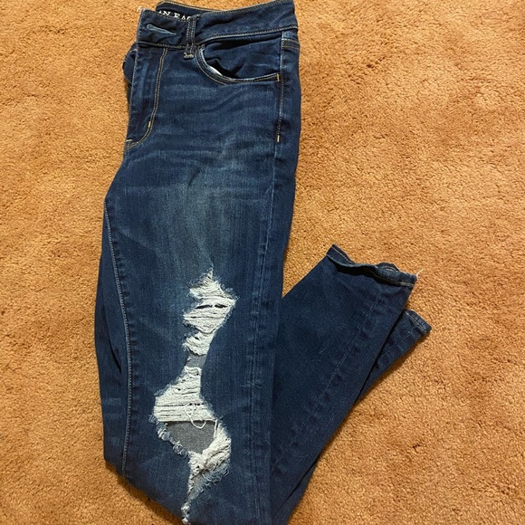 Size 6 from American eagle, used good condition! Distressed dark denim. Super stretchy and comfy.