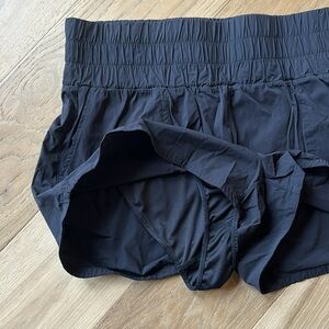 Black high rise athletic shorts. Lined on the inside. Has pockets. Size Large.