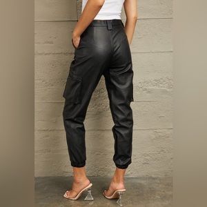 These joggers boast a high-rise waist that flatters your silhouette and provides a comfortable fit. The luxurious leather adds a touch of edge to your ensemble, whether you're dressing up for a night out or adding a chic twist to your everyday look. With a relaxed jogger silhouette and a high-fashion edge, these leather joggers are a versatile must-have for any fashion-forward wardrobe.