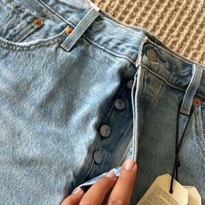 501 Levi’s Shorts. Non Stretch. Tags till attached. High Rise. Waist: 17 inches. Length 14 inches. Hip 22 inches. Make an offer 🤗