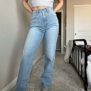 High Rise Light Wash Straight Jean