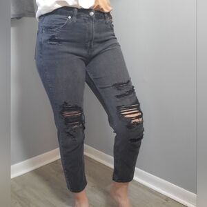 High Rise Mom Distressed Jeans- Womens Black