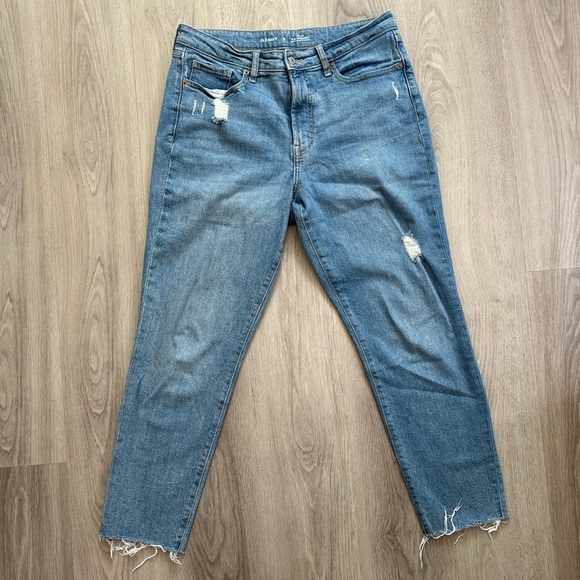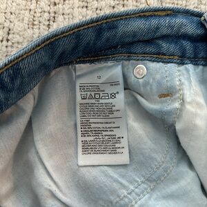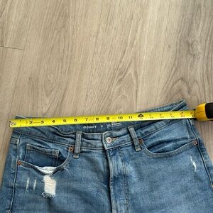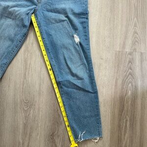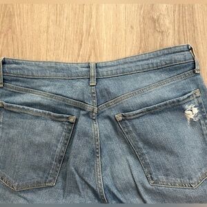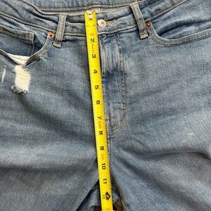 Great lightly distressed denim. Very slight stretch and super comfortable. One very light stain near the right knee as pictured but hardly noticeable. Measurements attached!