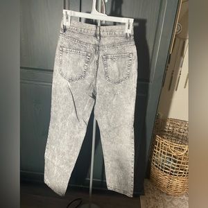 Gray wash high rise jeans with buttons (no zipper). Wide leg baggy fit. Very cute, comfortable, and flattering!!
