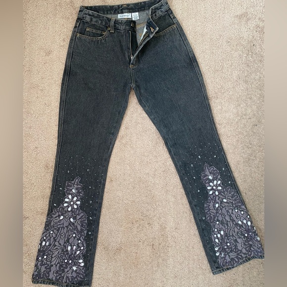 High Rise Rhinestone Design Black Denim Jean