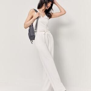 High Rise Rib Knit Wide Leg Sweatpants