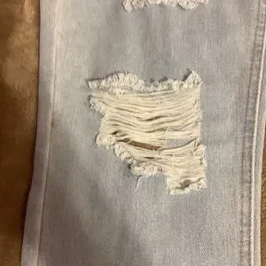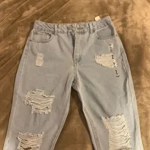 These ripped jeans are a light blue and are a size 7. Their also high rise on the waist . The waist is 16 inches . Inseam is 28 inches . The outer seam is 37 . Theses jeans are also brand new and haven’t been wore ! If you have any more questions just comment on them and I’ll get back to you as soon as possible !