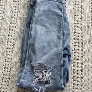 THE JEANS ARE NOT THE FIRST PHOTO. The actual jeans are VERY similar but not the same. Tags say size 5 but really fit anywhere from 5-8. My weight fluctuates and the jeans have always fit. They are stretchy and comfy.