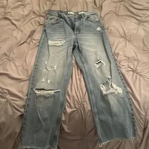 Profile High Rise Mom Jeans Light Wash Ripped Size says it’s a 5 but fits a 0
