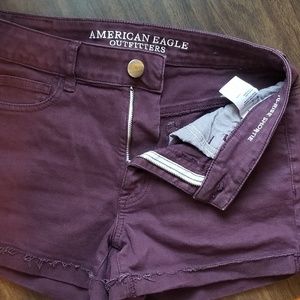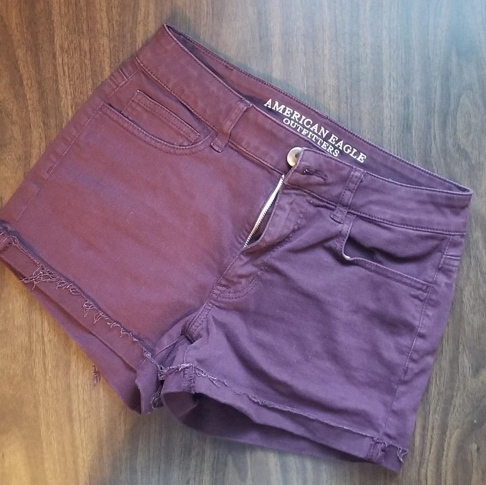 High rise Shortie shorts from American Eagle Outfitters. Maroon. Lightly worn. Cuffed hem.