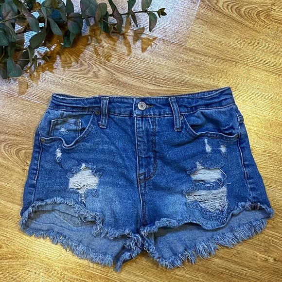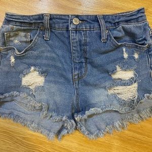 High rise Shortie shorts by Mossimo! Has fraying on the bottom and distressing! Super cute and in awesome condition!
