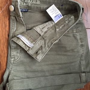 Denim x high rise shorties from American Eagle! They are just a size too big for me. Worn once!
