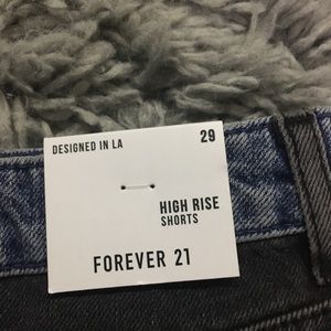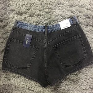 Colorblocked shortie shorts. Light wash denim and light black. No stretch. 1.5” inseam. New with tag. True to size