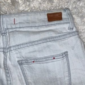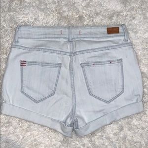 Shorts are somewhat stretchy with a very light blue wash (close to white) and a roll-up at bottom. Great condition, barely worn!