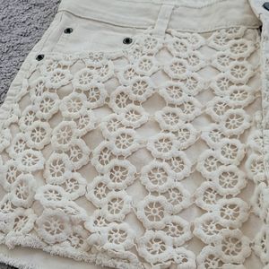 Super cute light cream color shorts with detail overlay, not see thru. LIKE NEW.
