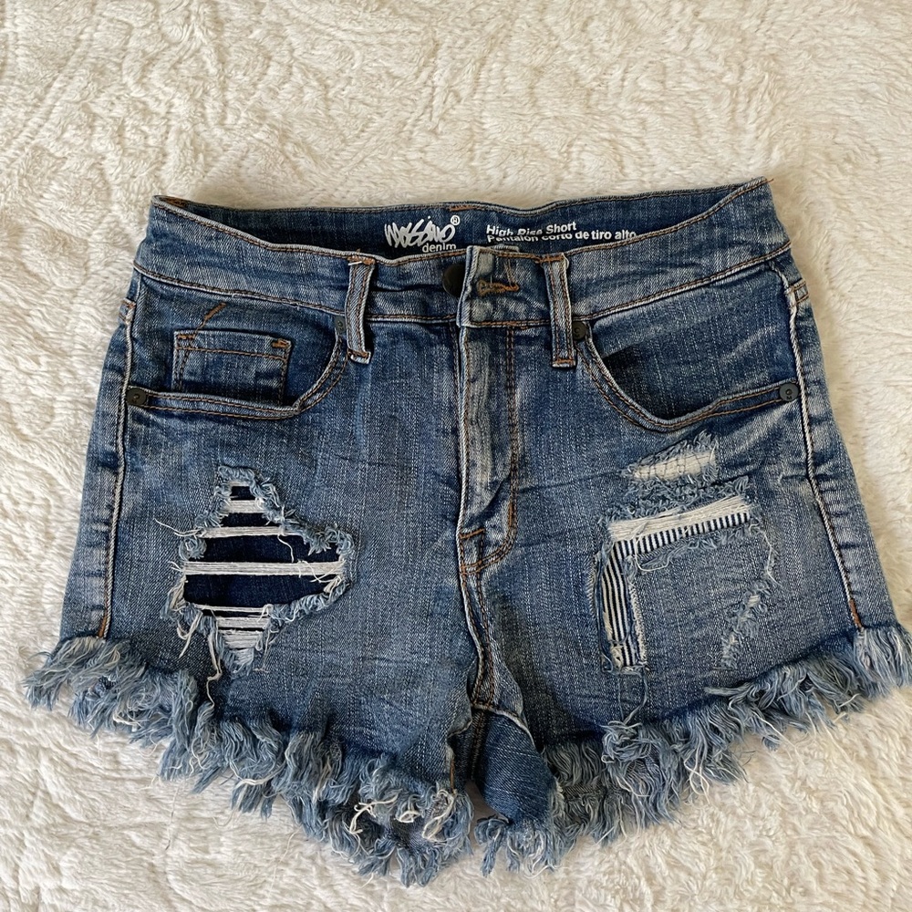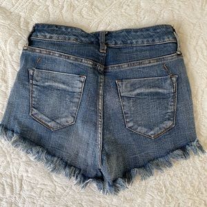 High rise blue Jean shorts. Stretchy, Good condition came with distressed rips