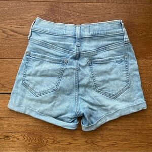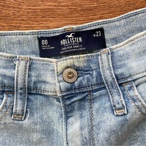 Hollister high rise light blue denim stretch shorts with 3” inseam.