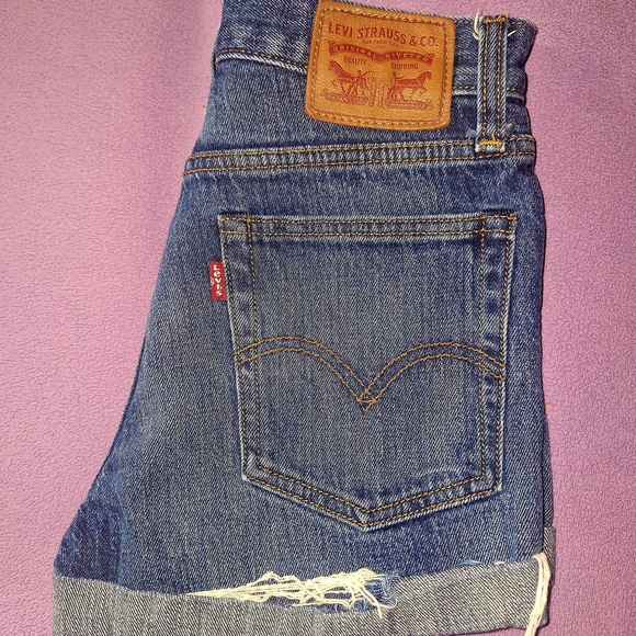 Levi's high rise short shorts. No very stretchy, only worn a handful of times. Super cute! Size 25