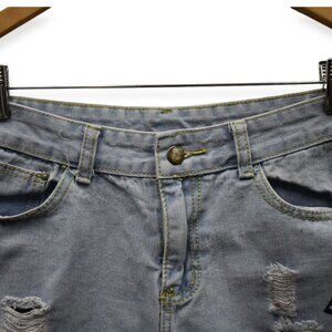 High Rise Shorts M Womens Denim Light Wash Distressed Cutoff Patchwork