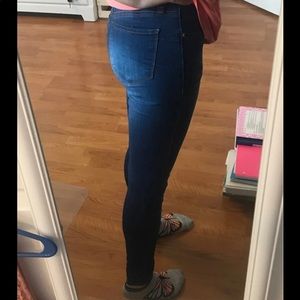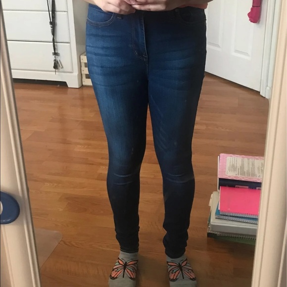 High Rise Skinny jeans Size 3 but fits a size 1 or 2 better Pretty tight and looks better on someone over 5ft Really good condition