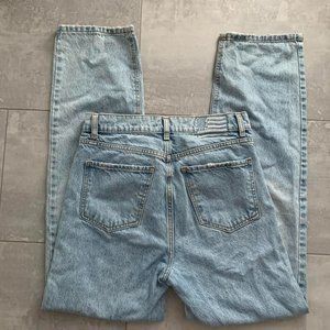 super cute revice denim jeans with a little bit of distressing on the thigh perfect for a casual look, beautiful straight leg with a high rise. Such a cute comfortable fit perfect for that model off-duty look. measurements waist: 32” rise: 12” 90s, minimalist, casual, streetwear, ripped
