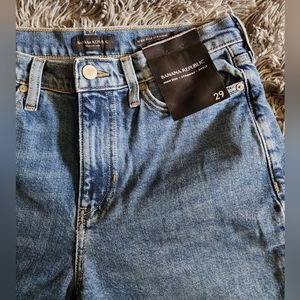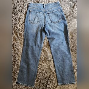 These are nwot Banana Republic womens jeans. They are high rise straight leg jeans with a small amount of distressing on the knee area.