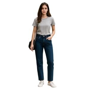High Rise Straight Leg Jeans Dark Wash Blue Denim Classic Fit by Nocturne