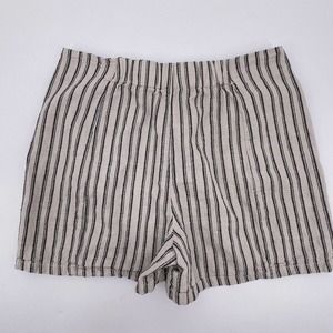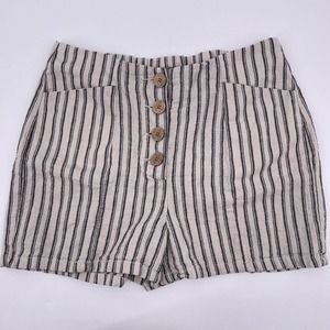 High Rise Striped Shorts Maurices Sz 6 Mini Length Cotton Linen Cream and Navy