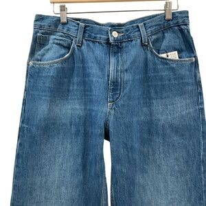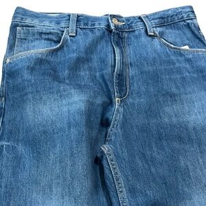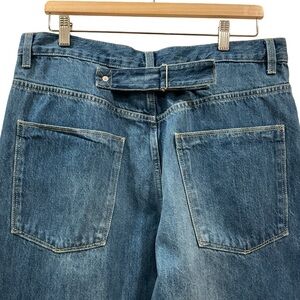 Beautiful Zara jeans with cute little workable buckle in back, medium wash, seems to be straight leg. Material: 100% cotton. Measurements: Inseam 33”, rise 12”, waist 35”. Size 8