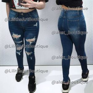 ☆High-rise ripped skinny jeans with belt loops & a zipper fly/button closure.