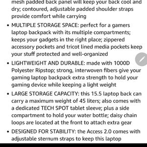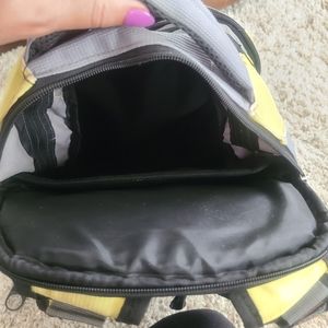 This backpack has so much storage and is amazing for organization. Couple of stains on the front. In photos