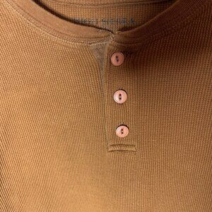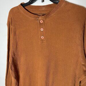 Super nice, comfortable and casual pull over shirt. Rust color with waffle print. Would look wonderful under a flannel shirt.