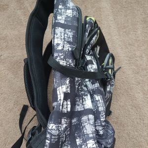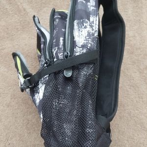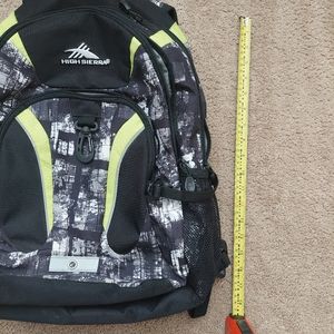 Black pattern/Yellow High Sierra Backpack. Please see photo for tear in mesh.
