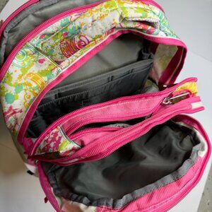 🎒 Stylish pink High Sierra backpack with vibrant floral design, perfect for organization!