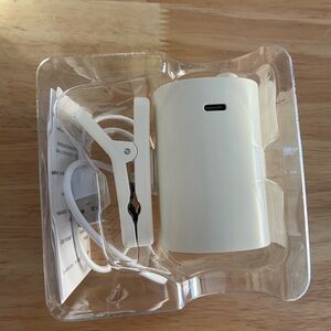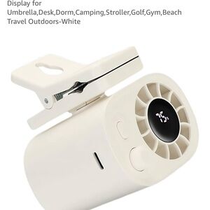 Compact high speed fan with digital display. Sleek white design.