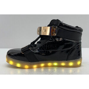 High Top LED Light Up Shoes Black Gold Sneakers Glow Sole Unisex Size 39