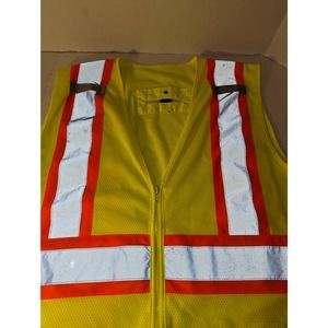 High VIS Vest Men's Large Yellow Orange Reflective Mesh Towing Highway
