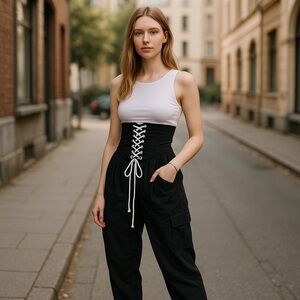 High Waist Cargo Pocket Drawstring Jogger Pants New