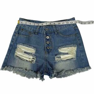 High Waist Cutoff Ripped Jean Shorts Womens Medium Button Fly