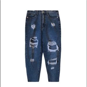 High Waist Distressed Mom Jeans With Tapered Leg Woman’s Size 27