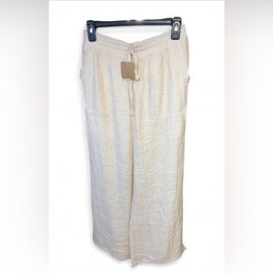 High Waist Drawstring Wide Leg Pants in Oatmeal