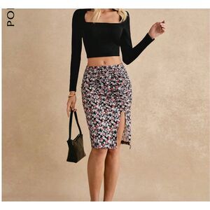 High Waist M-L Floral Ruched Split Thigh Skirt Vacation Skirt Bridgerton